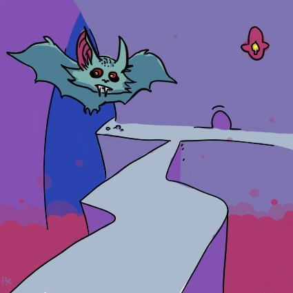 A Vampire Bat, or (more commonly) three vampire bats, can make a formidable enemy, easily underestimated by the early, unprepared adventurer. They appear in packs and move quickly which results in frequent attacks and improbable escape. They also replenish their health with each sucessful attack, making them very hard to kill with a low-damage weapon such as your starting dagger. They posess the intrinsic attributes transference and flit.